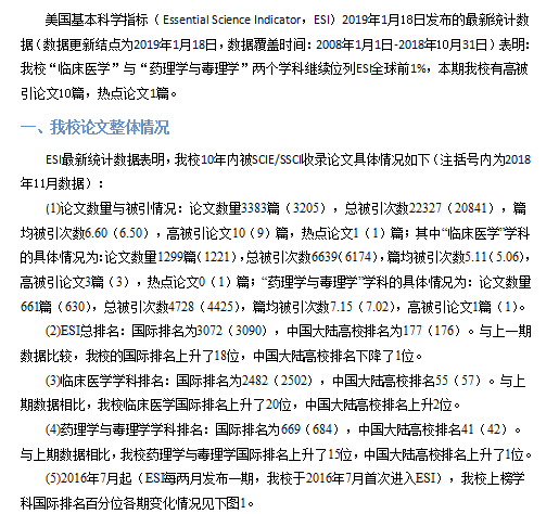 广州中医药大学ESI学科排名动态快报(2019年1月数据)