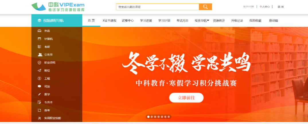1.电脑端:通过电脑浏览器访问“中科VIPExam考试库”官网https://www.vipexam.cn。