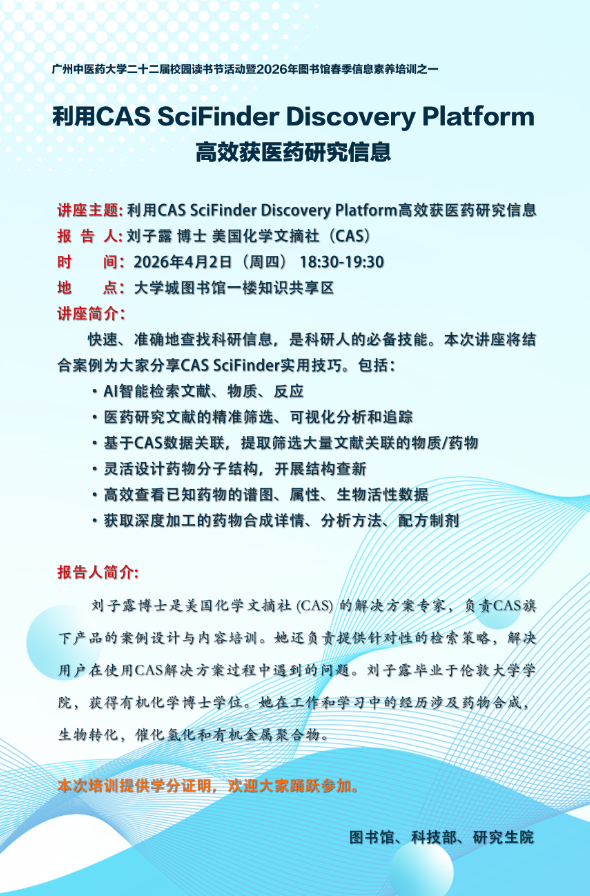 广州中医药大学二十二届校园读书节活动暨2026年图书馆春季信息素养培训之一