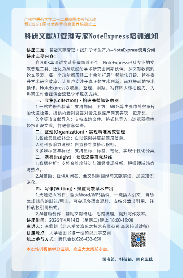【讲座】科研文献AI管理专家NoteExpress培训通知